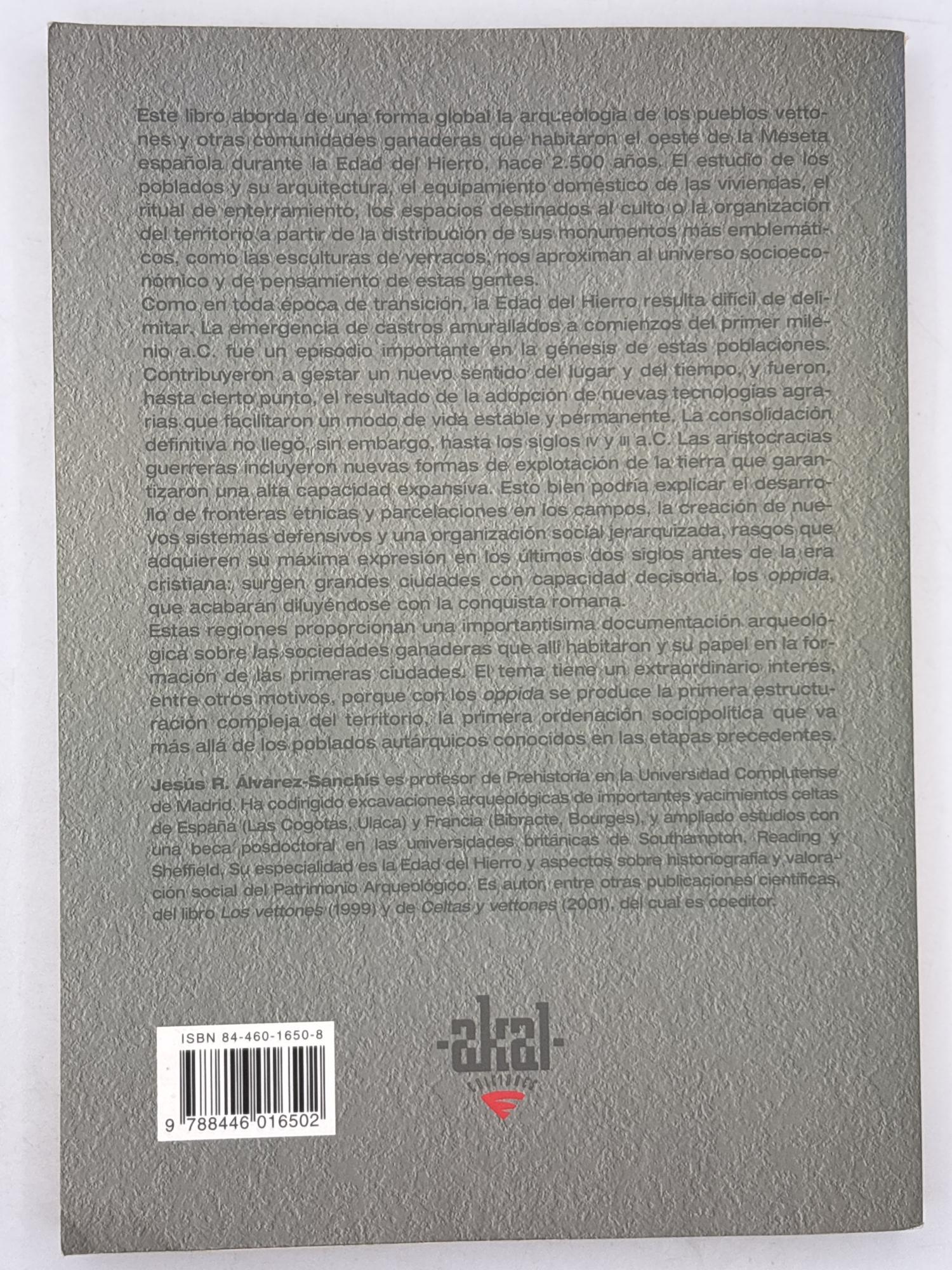 Este libro aborda de una forma global la arqueología de los pueblos vetones y otras comunidades ganaderas que habitaron el oeste de la Meseta española durante la Edad de Hierro, hace 2500 años. El estudio de los poblados y su arquitectura, el equipamiento doméstico de las viviendas, el ritual de enterramiento, los espacios destinados al culto o la organización del territorio a partir de la distribución de sus monumentos más emblemáticos, como las esculturas de verracos, nos aproximan al universo socieconómico y de pensamiento de estas gentes