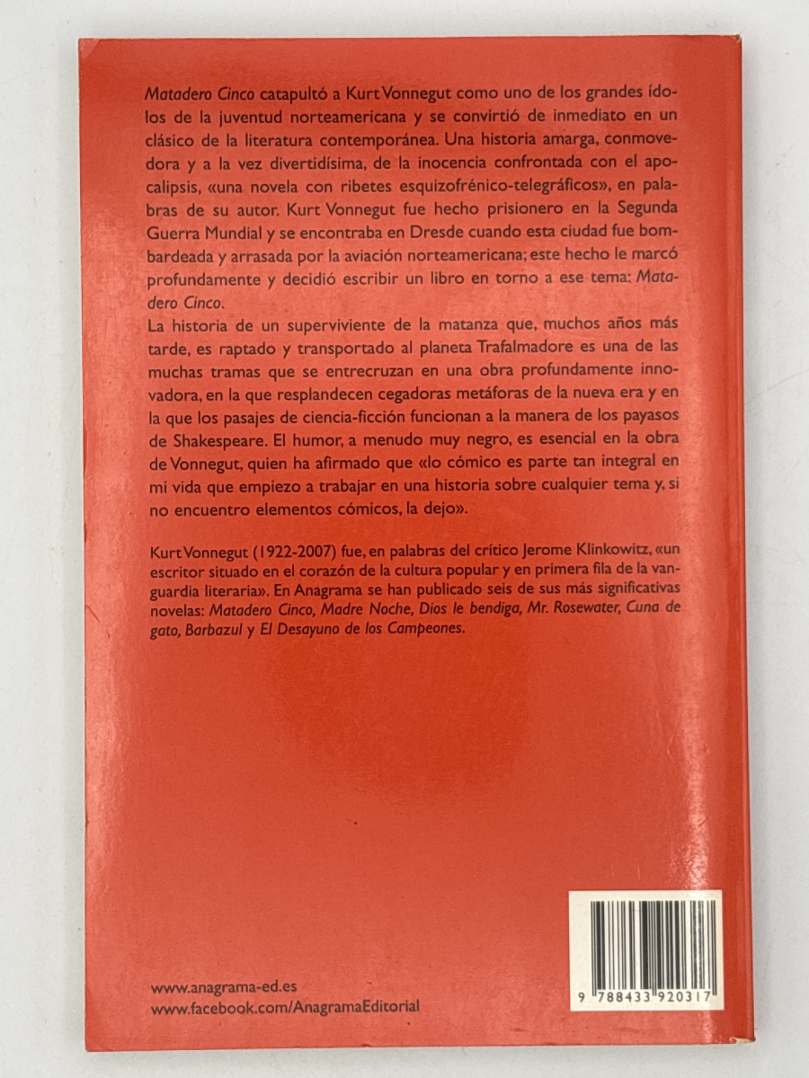 Y esa novela se convirtió en la gran novela antibélica de todos los tiempos. En el emblema de la contracultura de los sesenta. En uno de los mayores clásicos de la narrativa estadounidense. En este libro que ahora sostiene el lector, en el que late el corazón asustado y risueño de Vonnegut dentro de un búnker bombardeado y también la promesa infantil (y bonita) de que no habrá más guerras