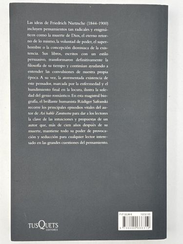 Las ideas de Friedrich Nietzsche (1844-1900) –el eterno retorno de lo mismo, la voluntad de poder, el superhombre o la concepción dionisiaca de la existencia– transformaron definitivamente la filosofía de su tiempo y continúan ayudando a entender el nuestro. A su vez, la atormentada existencia de este pensador, marcada por la enfermedad y el hundimiento final en la locura, ilustra la soledad del genio romántico. Para esta biografía, Safranski recorre los principales episodios vitales del autor de Así habló Zaratustra, dando así la clave de los enigmas e intuiciones de un autor que, más de cien años despues de su muerte, mantiene todo su poder de provocación.