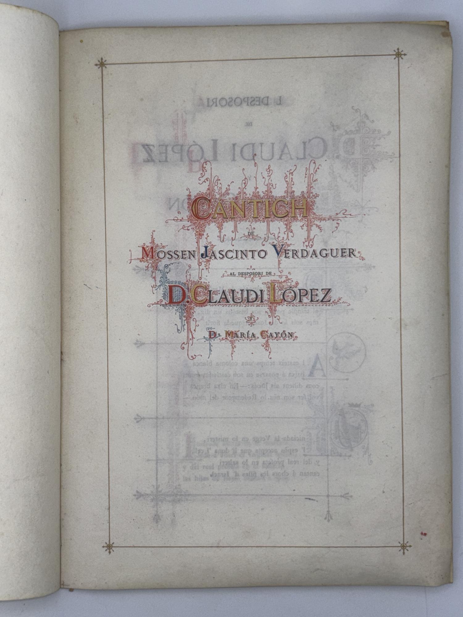 “CANTICH / CÀNTIC”, “MOSSEN JASCINTO VERDAGUER” “CLAUDI/CLAUDIO LÓPEZ” y “D. MARIA CAYÓN"