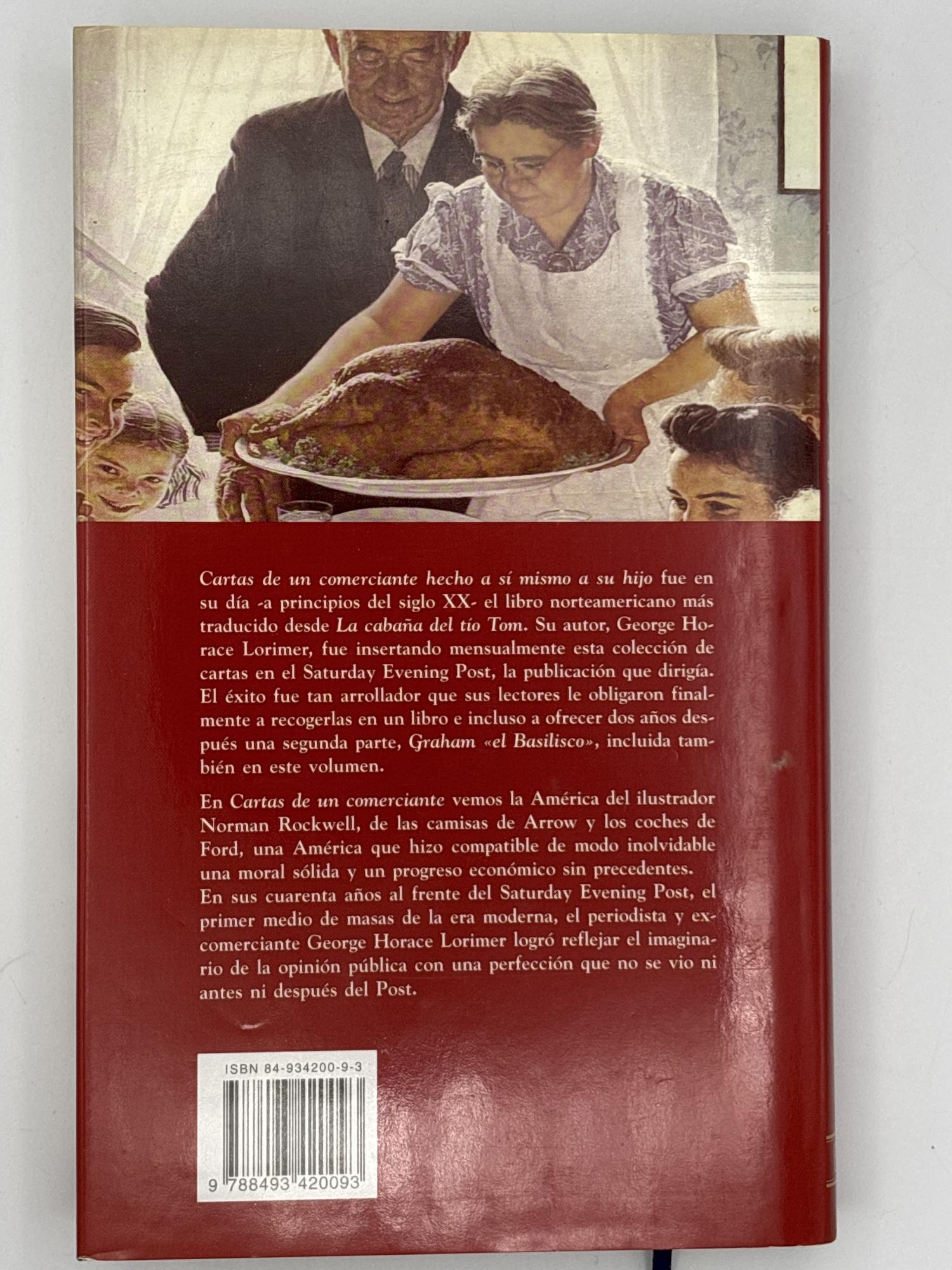 Antes de ser uno de los mejores periodistas norteamericanos de la primera mitad del siglo XX, Lorimer trabajó en la industria de los derivados cárnicos. Fue en la universidad de la vida, entre el fragor de los almacenes y las urgencias de la vida comercial, donde forjó su carácter y adquirió una formidable experiencia práctica que supo aprovechar para conducirse con tino en los más variopintos asuntos. Ésta es la academia que se transparenta en las Cartas de un comerciante. Treinta y cuatro epístolas en las que Lorimer asume el personaje de un viejo y exitoso empresario que va aconsejando a su hijo, desde el final de la universidad hasta la cima de la empresa y del matrimonio. Treinta y cuatro pequeñas obras maestras del sentido común escritas en un leguaje sencillo y directo y con abundantes dosis de buen humor. Las cartas siguen la estructura clásica de pasar de la anécdota a la categoría, frecuentemente a través de las historias que ha visto el comerciante en su pueblo o en su fábrica. Y con toda su sabiduría, el viejo zorro busca abrir los ojos del futuro director al equívoco espectáculo de la vanidad humana. Desde la asunción de la realidad tal cual es, las observaciones de Lorimer muchas veces se convierten en auténticos aforismos. Por primera vez se publica en castellano las Cartas de un comerciante. Conservan la misma frescura y actualidad que cuando fueron escritas y que hicieron de este libro un clásico de la literatura estadounidense y un arrollador éxito de ventas.