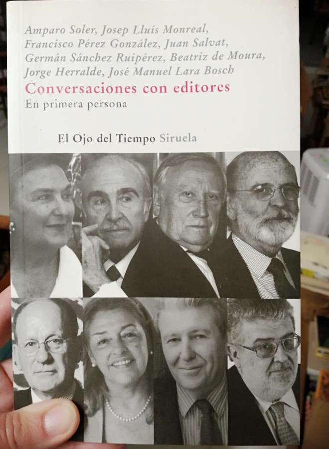 Amparo Soler, Josep Lluís Monreal, Francisco Pérez González, Juan Salvat, Germán Sánchez Ruipérez, Beatriz de Moura, Jorge Herralde y José Manuel Lara Bosch son ocho de los editores que han protagonizado los últimos treinta años de la edición en España y han compartido el espíritu emprendedor, la experiencia en el oficio y su amor al libro. De la mano de la Fundación Germán Sánchez Ruipérez, relataron su trayectoria personal y profesional en el ciclo titulado En primera persona. Conversaciones con editores, realizado con el doble objetivo de recoger la memoria inédita de los protagonistas desde la perspectiva de la vocación y la profesionalidad y de rendirles un homenaje por su aportación a la cultura en España. De alguna manera, también se trataba de reivindicar la condición del editor, que al materializar su proyecto cultural logra trascender los límites de lo económico. Aunque desembarcaron en el mundo editorial por caminos diversos, estos ocho editores lo hicieron bajo el común denominador de la vocación y el gusto por la lectura. Muchos de ellos se criaron entre libros, originales de grandes autores y pruebas de imprenta. En estas conversaciones rememoraron sus primeros pasos en el mundo editorial, sus objetivos, sus logros y sus dificultades en un diálogo con otros tantos interlocutores, procedentes de sectores diversos, algunos de ellos escritores, jóvenes editores o catedráticos que fueron sus colaboradores habituales.