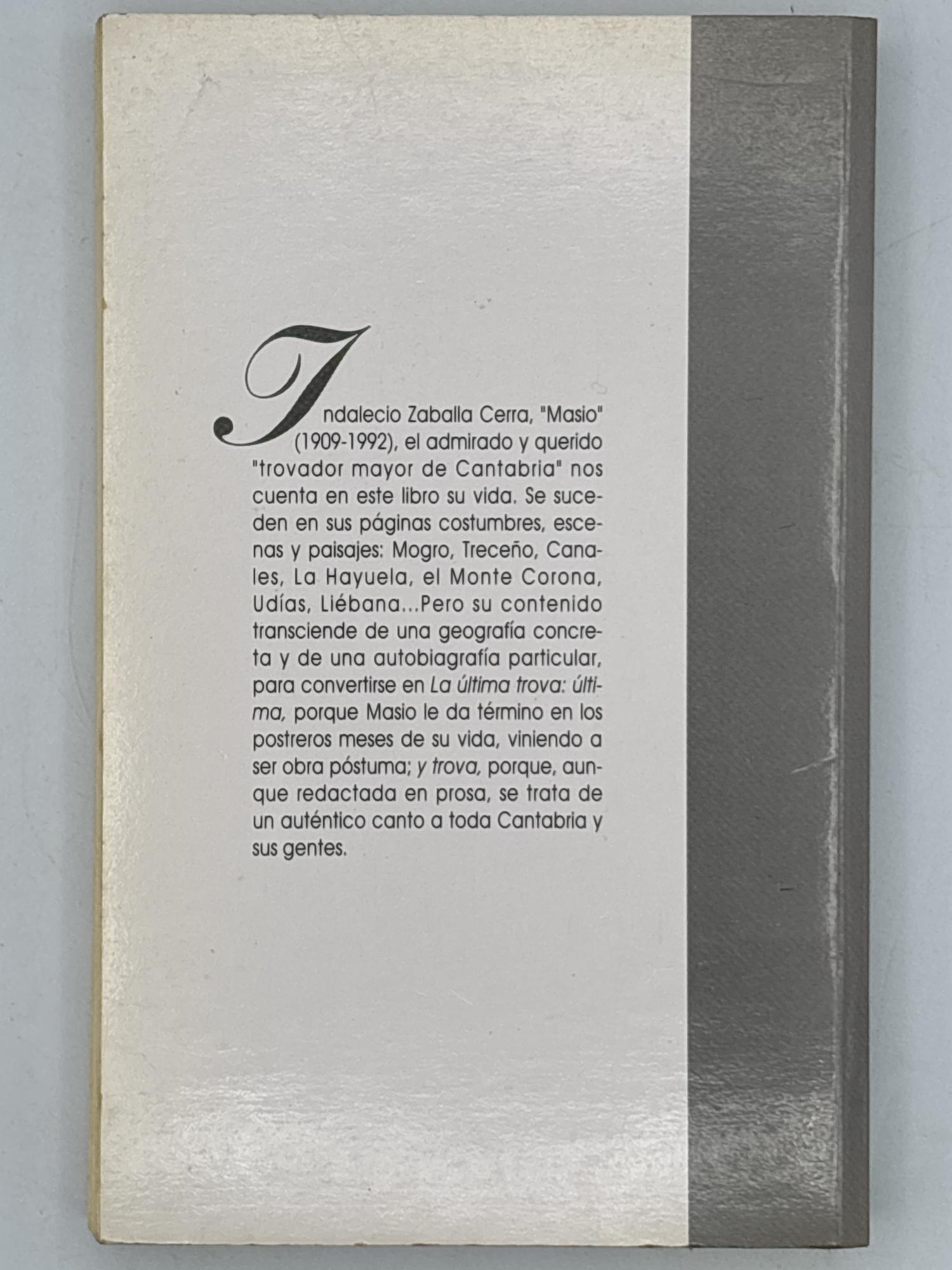Indalecio Zaballa Cerra, "Masio" (1909-1992), el admirado y querido trovadoe mayor de Cantabria nos cuenta en este libro su vida. Se suceden en sus páginas costumbres, escenas y paisajes: Mogro, Treceño, Canales, La Hayuela. el Monte Corona, Udías, Liébana...se trata de un auténtico canto a toda Cantabia y sus gentes.