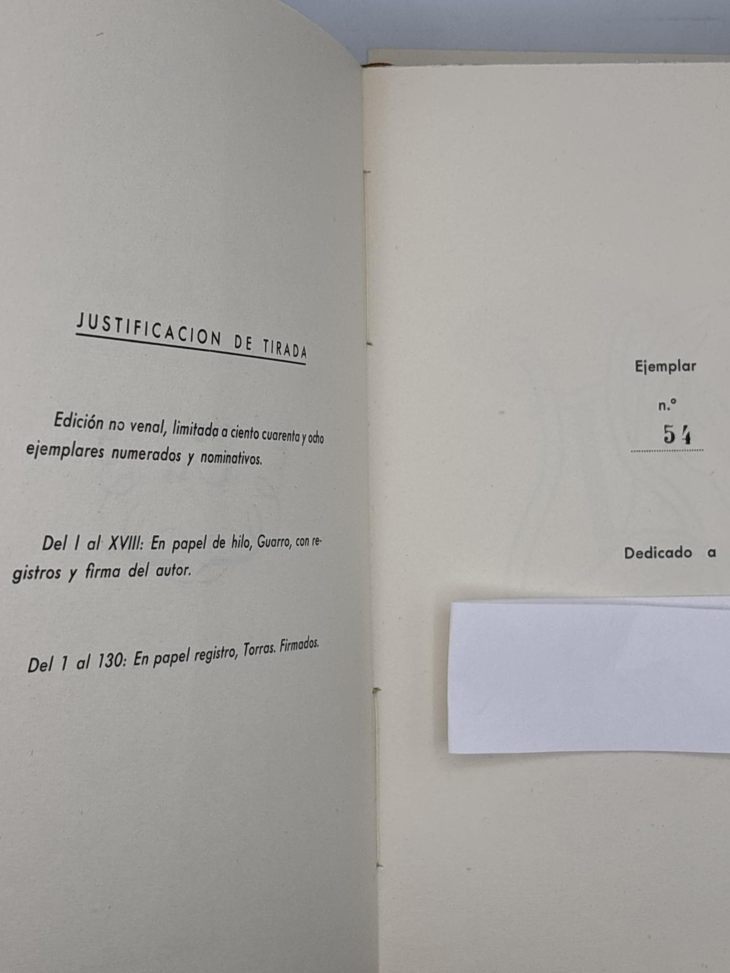 Libro TU, autor Jaime Masaveu, tirada de 148 ejemplares numerados siendo este el número 54, prologo de Eduardo del palacio, ilustraciones de Fernando A. Brufau, retrato del autor por Federico Ordiñana.